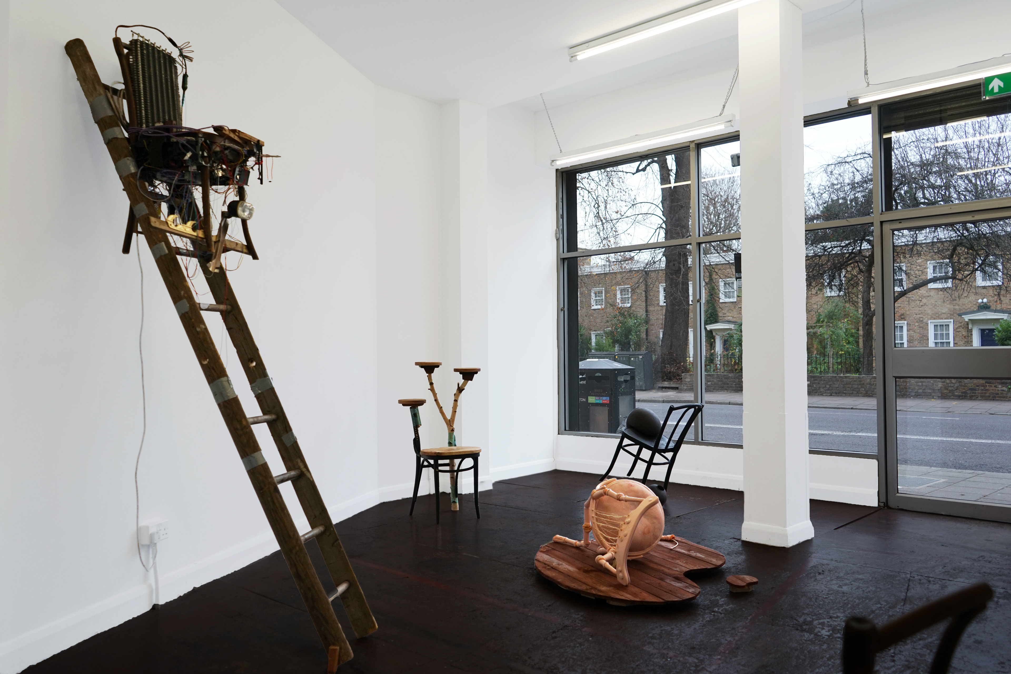 Beech bentwood chair, birch branch, PET plastic, ash, London plane Offcuts of walnut, beech, oak and ash,