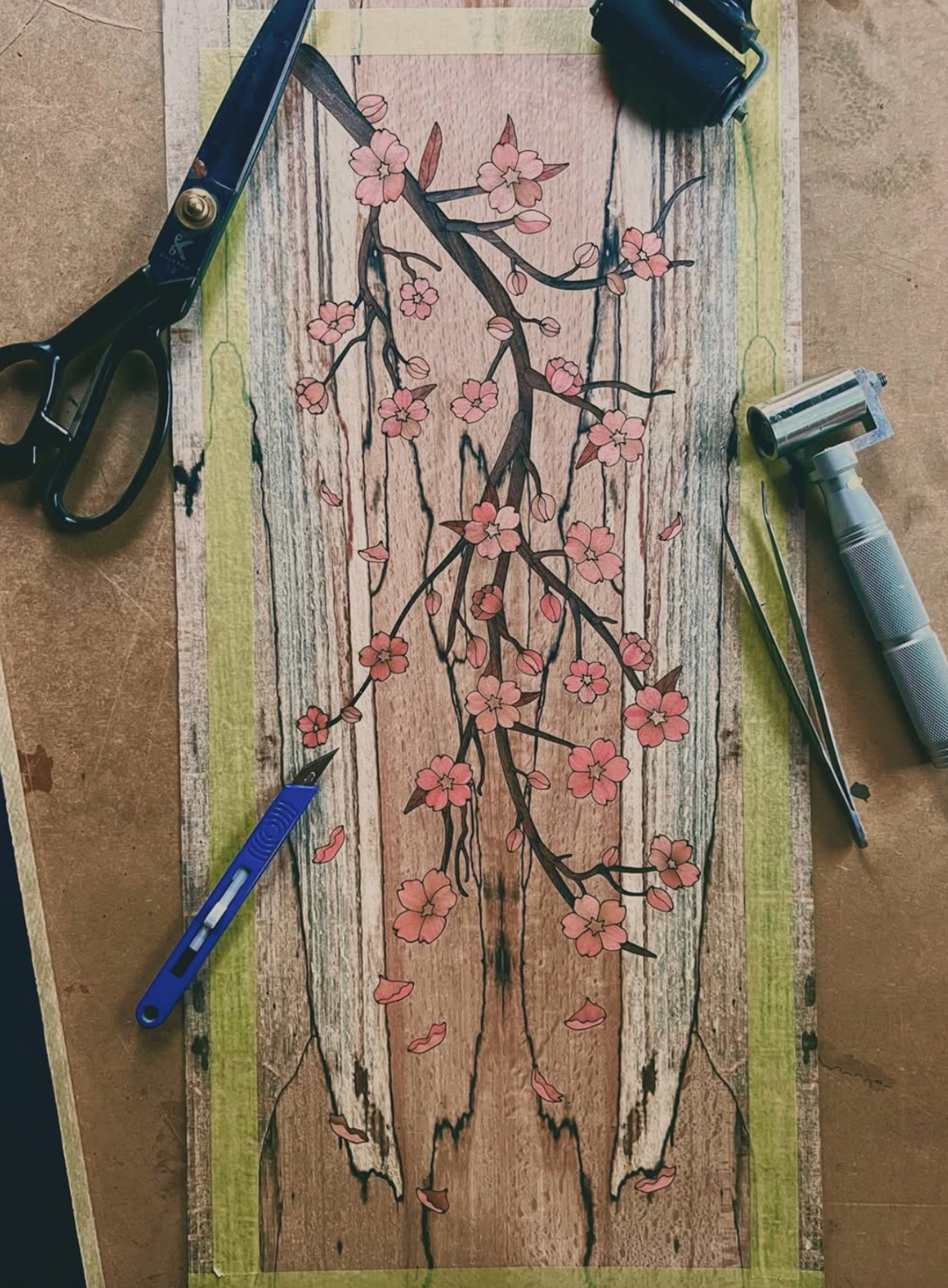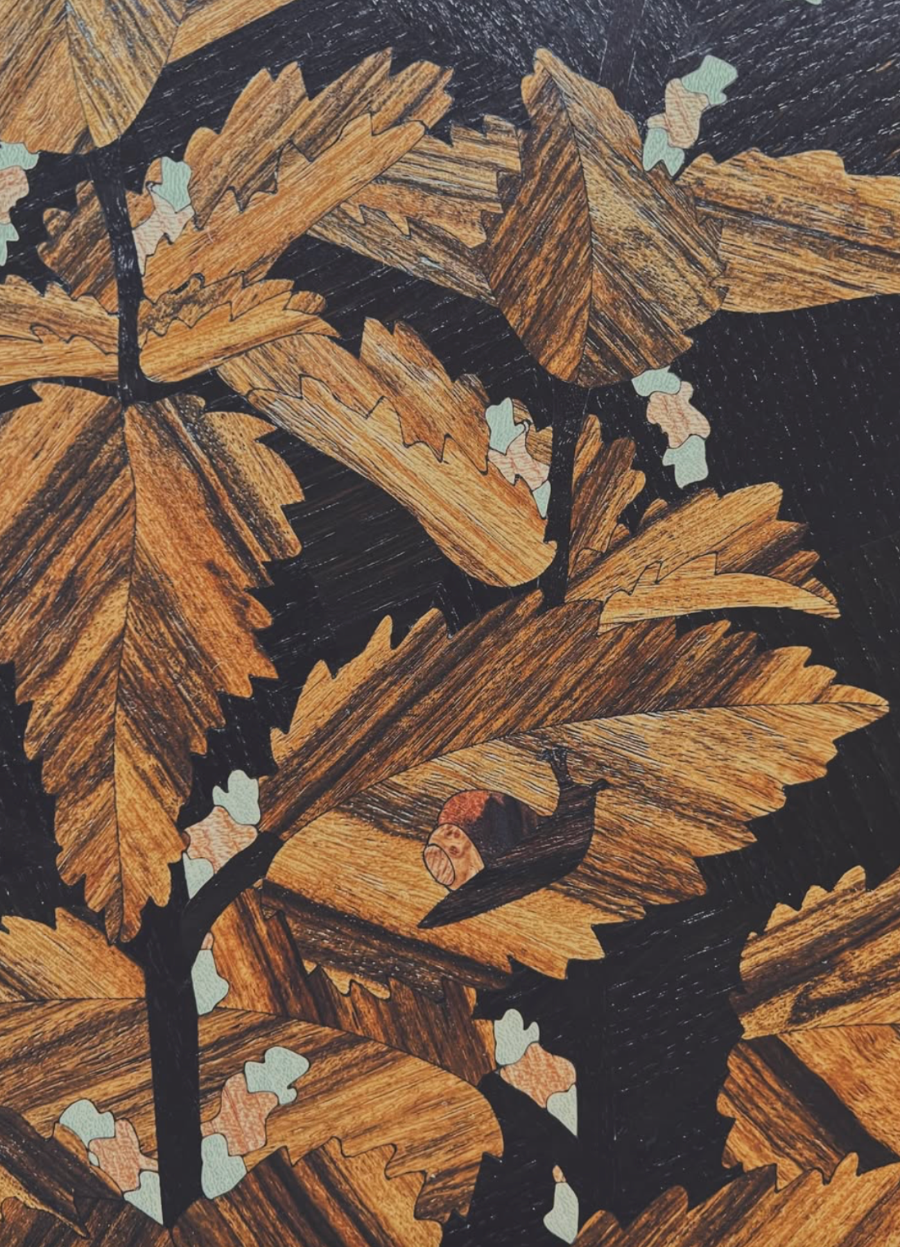 Carl Fox is a London-based artist specialising in marquetry and parquetry. Formerly a hairdresser, he spent over 25 years honing skills in upholstery, textile work, and furniture restoration before dedicating himself to marquetry. His innovative fusion of leather and wood veneer explores human emotion through form, texture, colour, and line. Carl draws inspiration from both modernist and classical styles, combining geometric forms with traditional figurative elements to create tactile, thought-provoking pieces. His work reflects an intrinsic connection to nature and the materials used by our ancestors. Carl has received mentorship from the Worshipful Leathersellers Company at Cockpit Deptford and the Carpenters Company QEST Scholarship. His works have been showcased at the Venice Biennale: Homo Faber and Collect Art Fair, and are held in collections both in the UK and internationally.