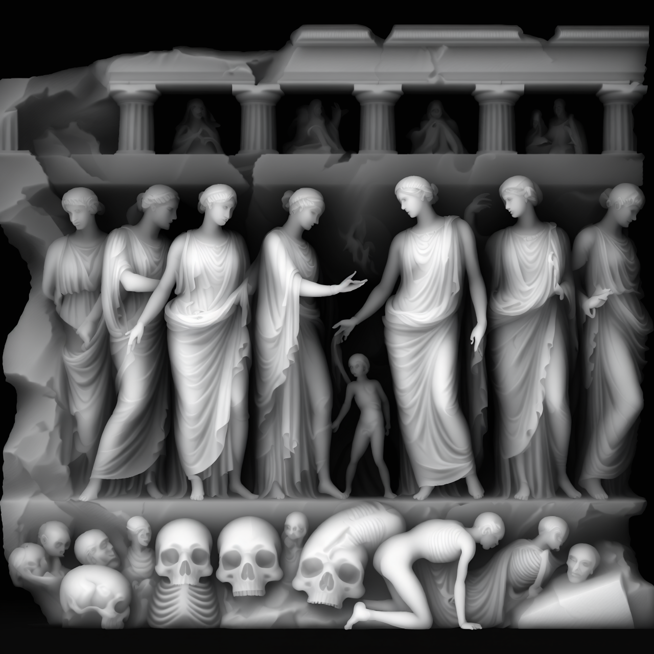 Jack Evans is a sculptor living and working in London. His work is interested in ideas surrounding looming existential threats and global catastrophic risk, using the visual language of apocalyptic blockbusters, heavy metal album covers, and the architecture of civilisations that have fallen before us. His practise is perfectly placed to examine and explore the Greek Goddess Hecate.