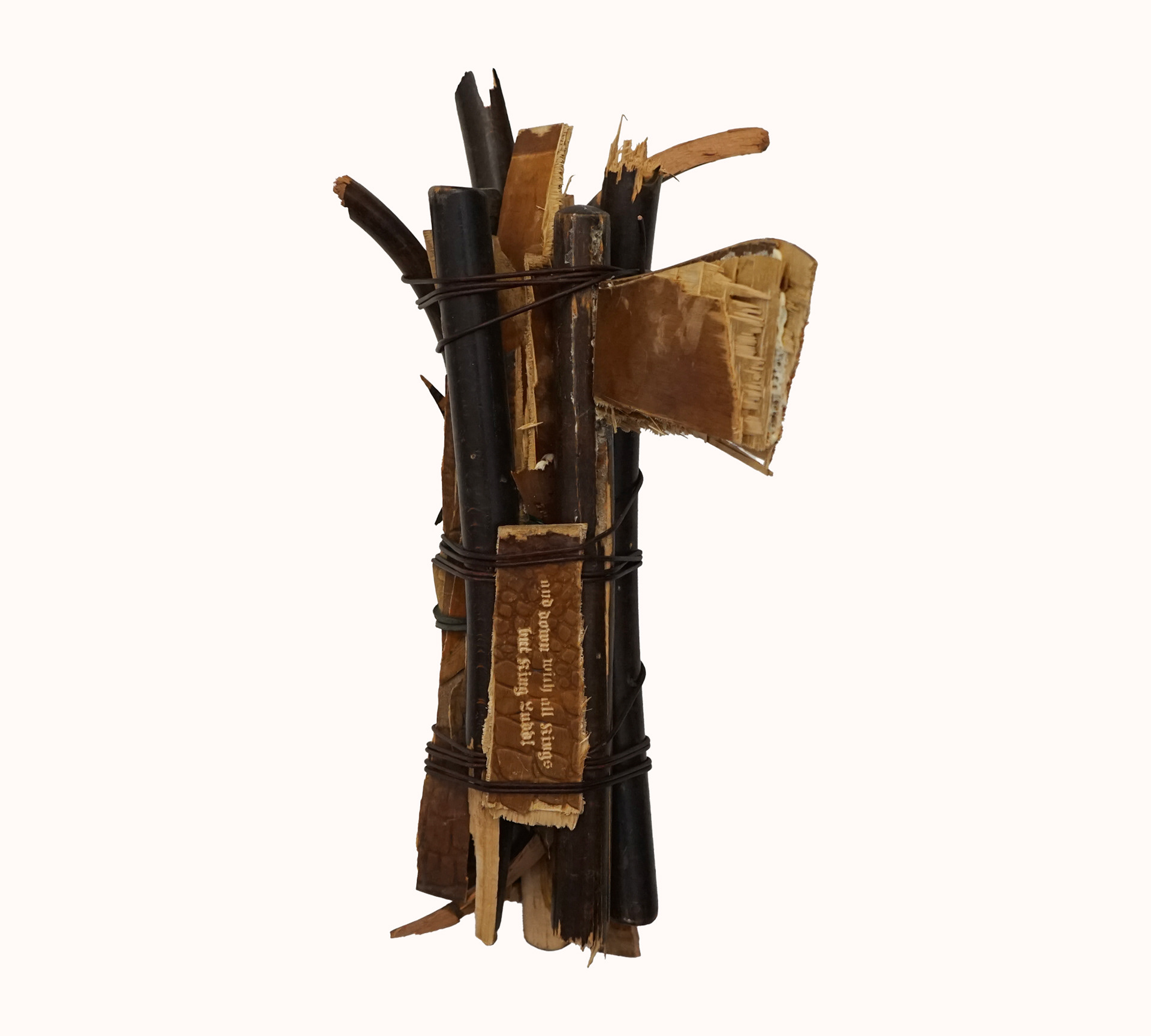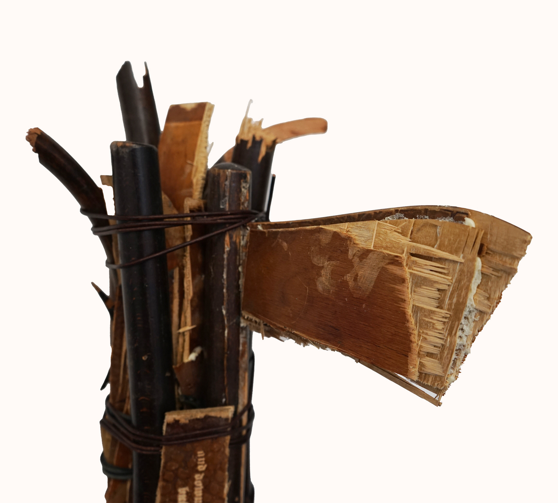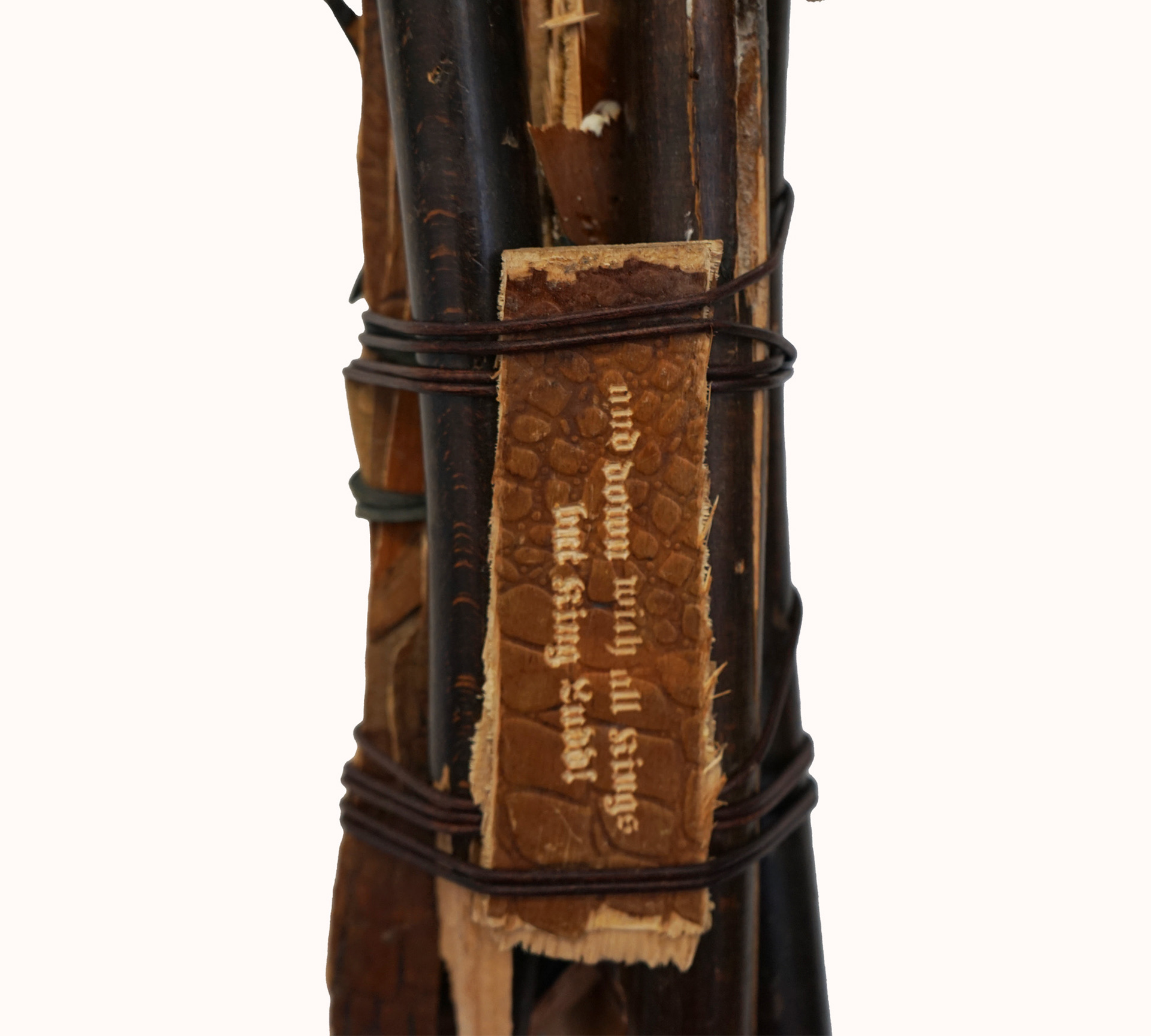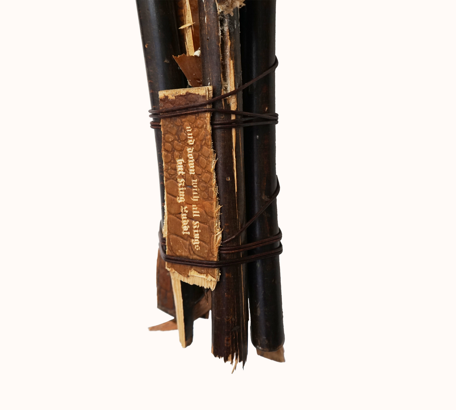 Bentwood chair, reconfigured by the artist, Leather cord,