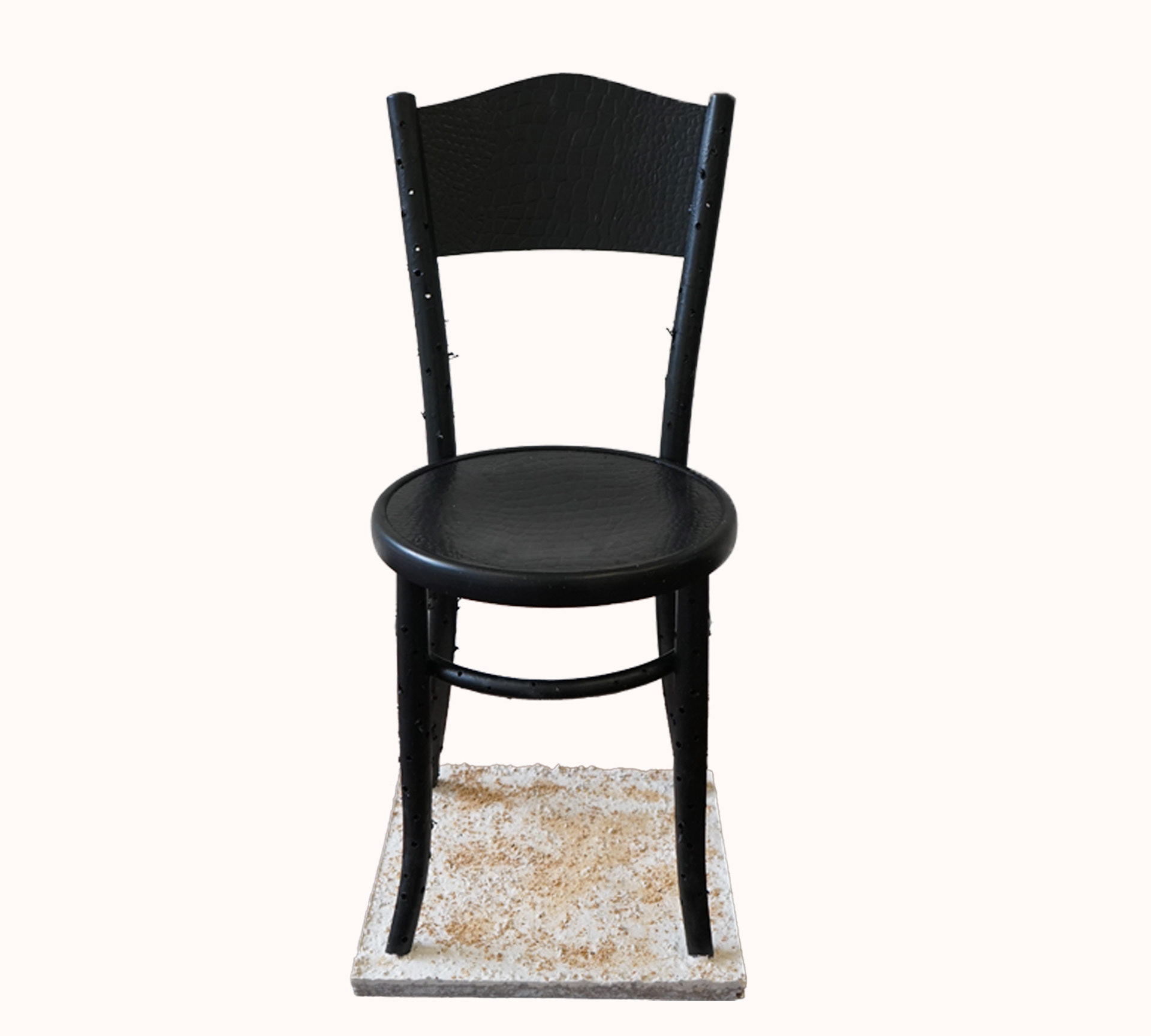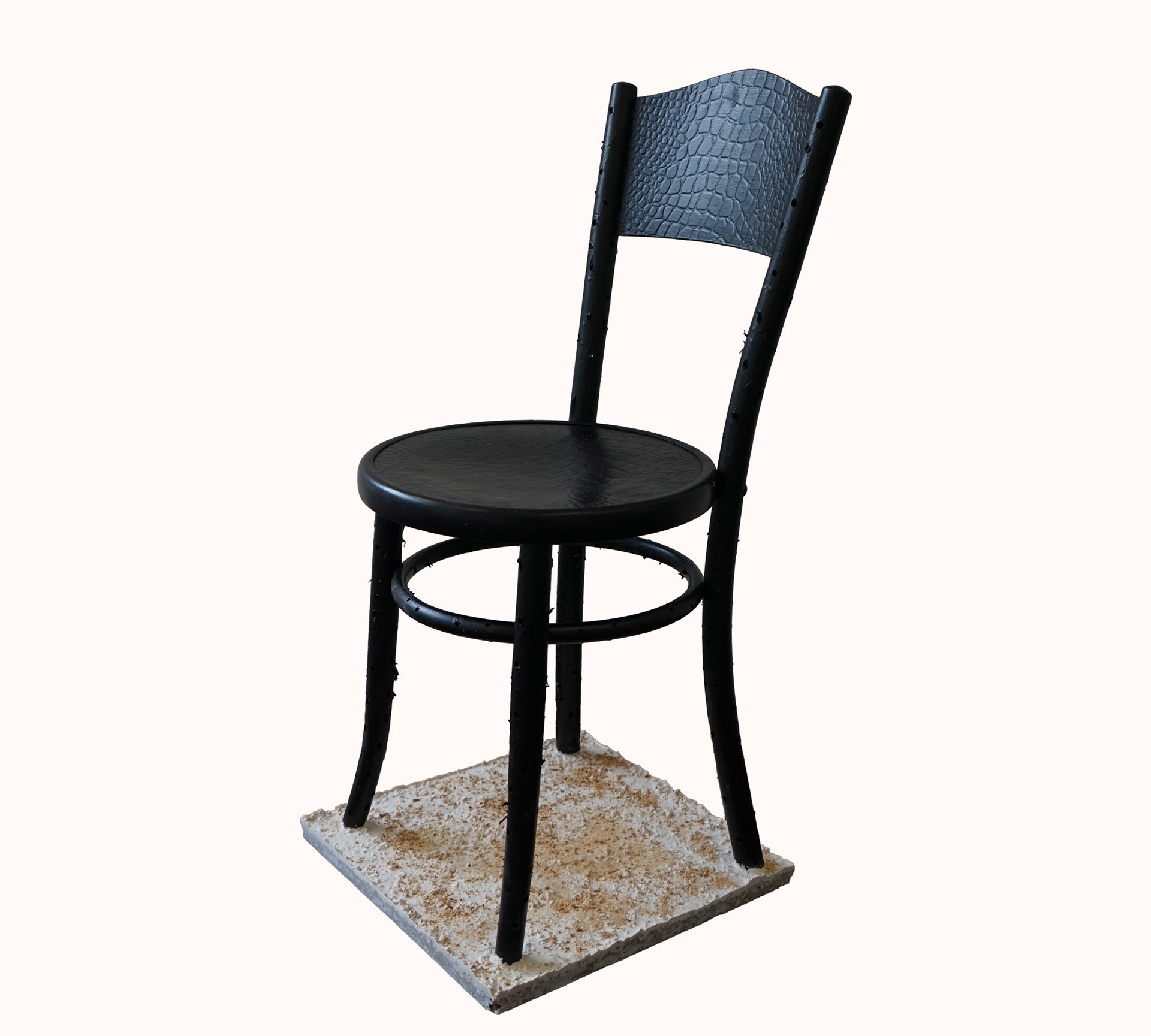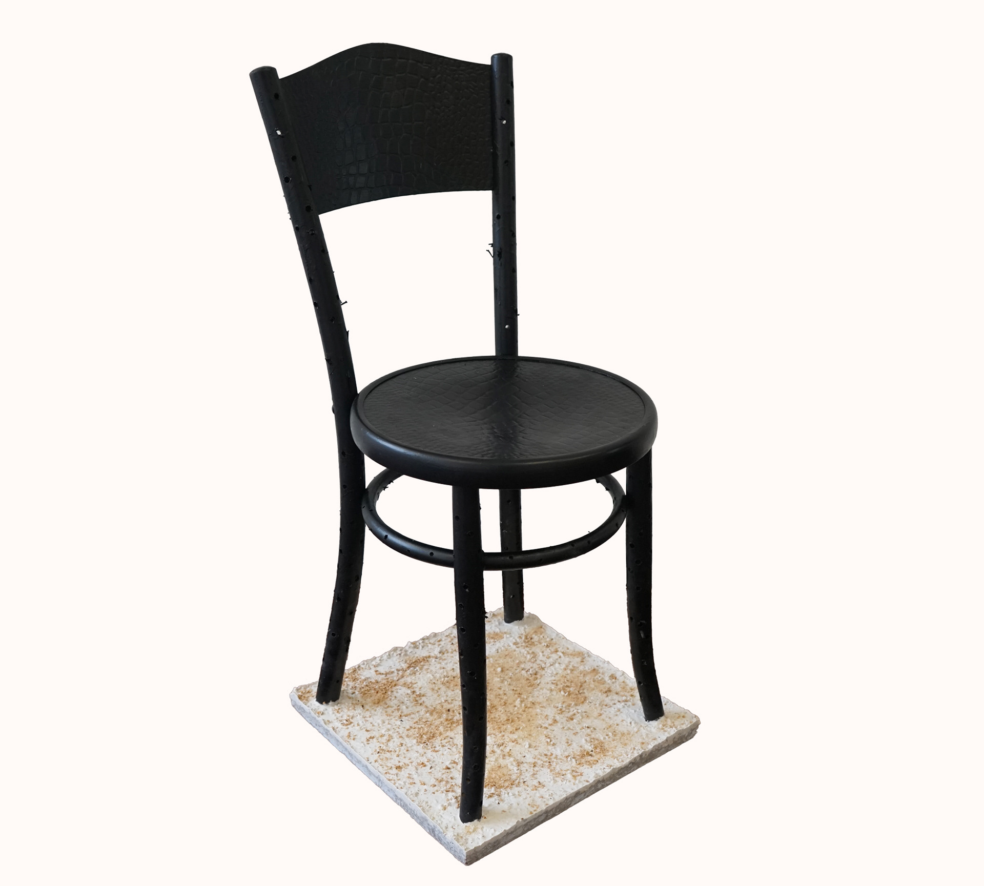 Residue of the chair, Rubber coating spray, Jesmonite on Bentwood chair,