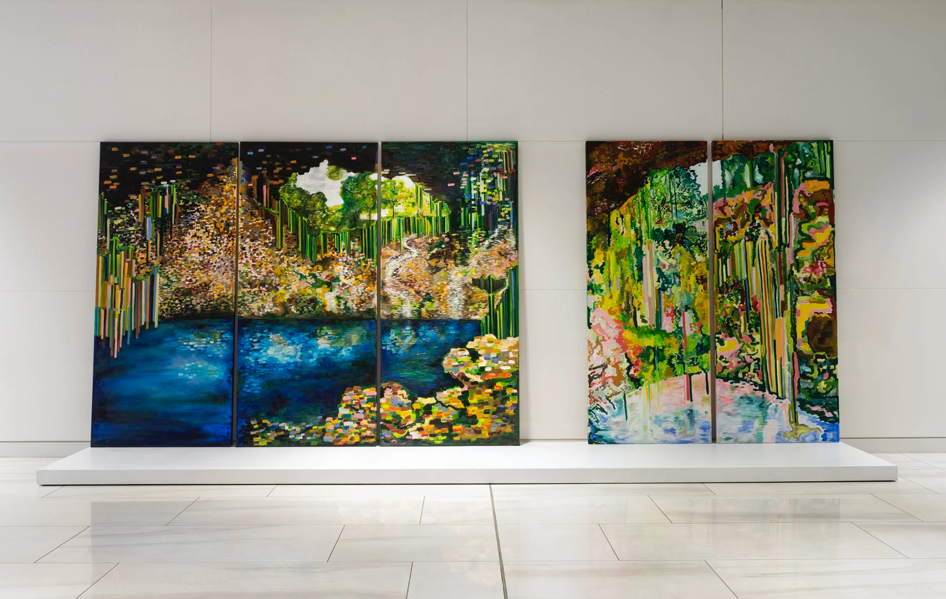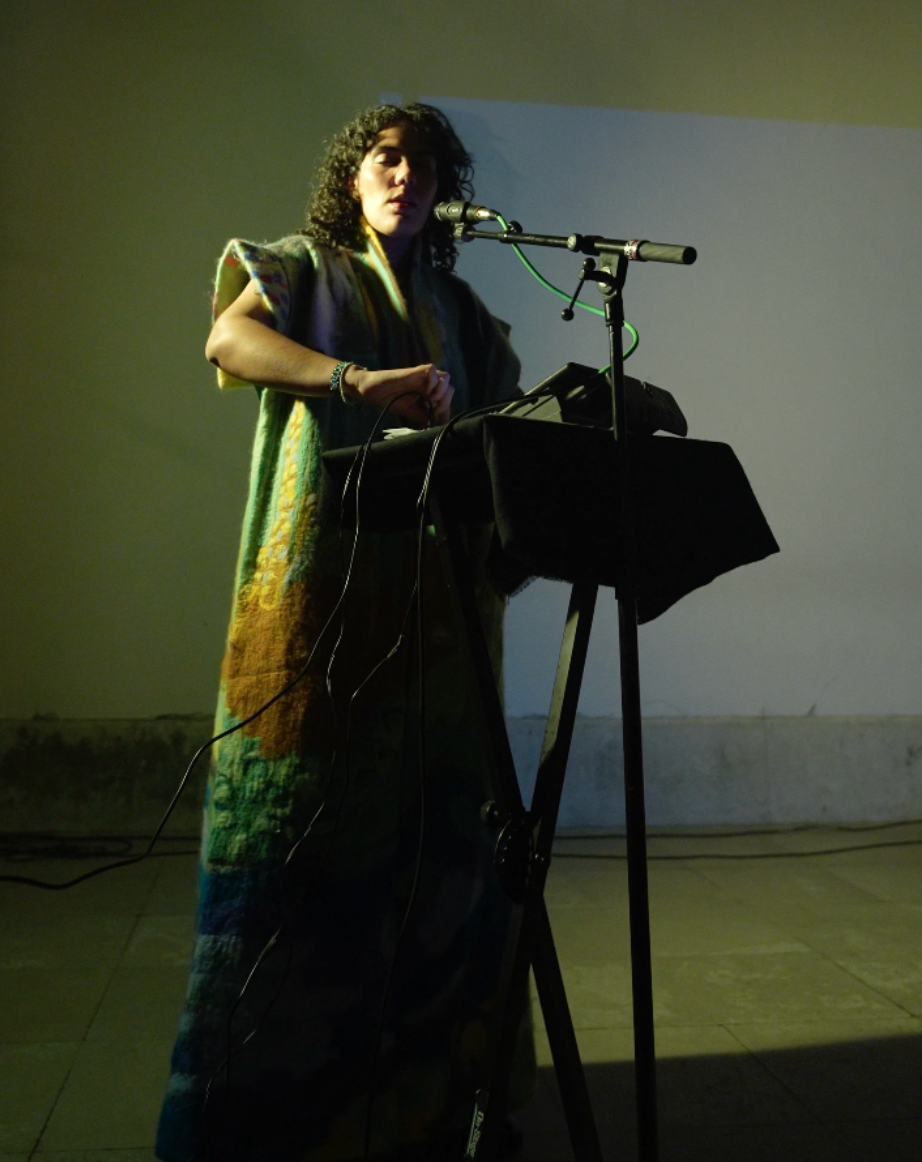 Her practice moves at the intersection of ecology, spirituality, and technology, allowing different forms of experience to meet without hierarchy. Rather than resolving these tensions, her work holds them open, inviting reflection on the porous boundaries between identity, belief, and perception.