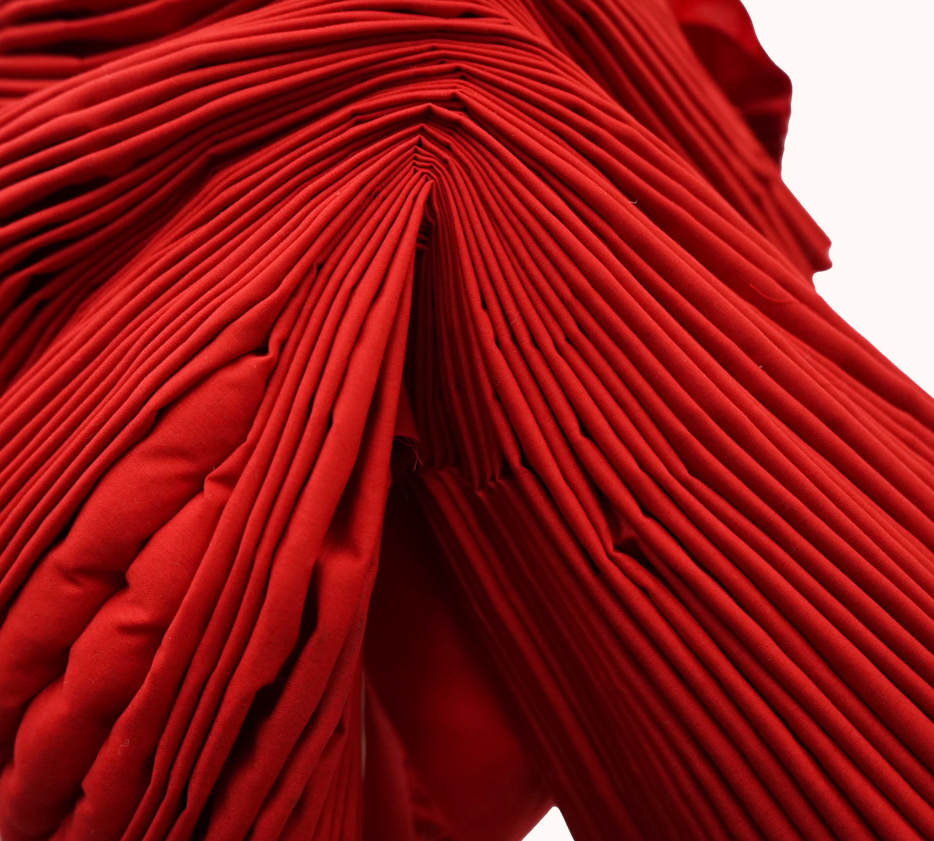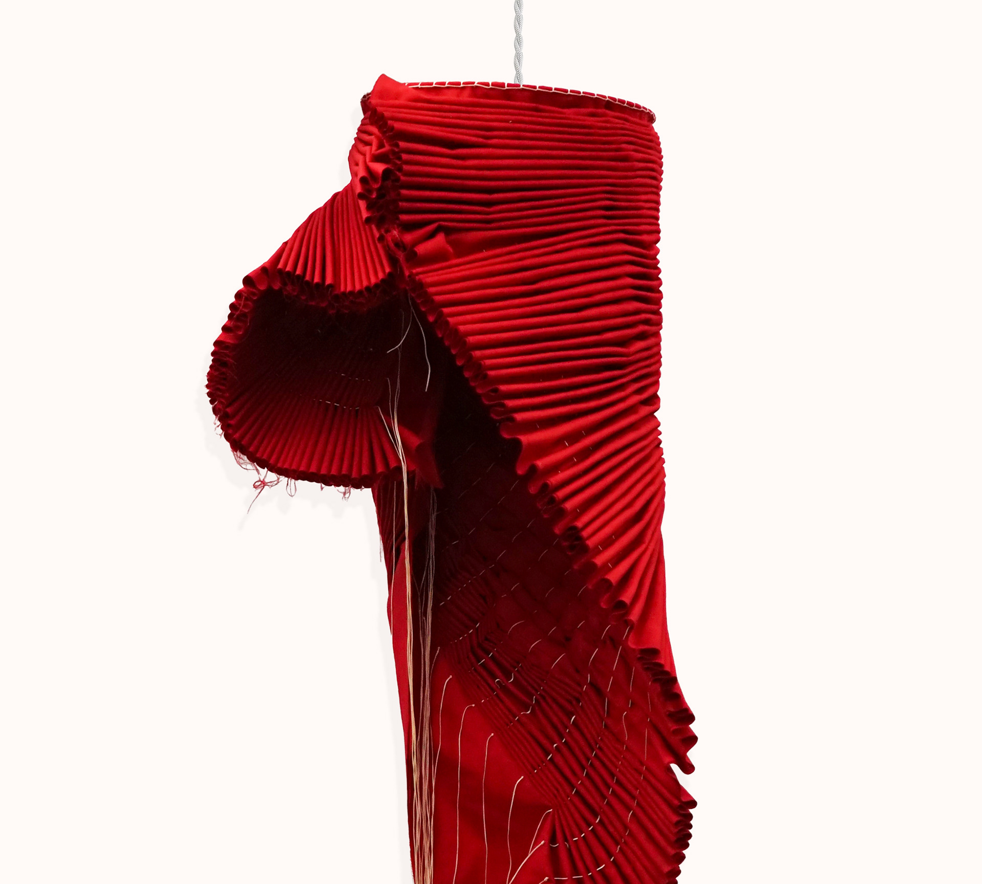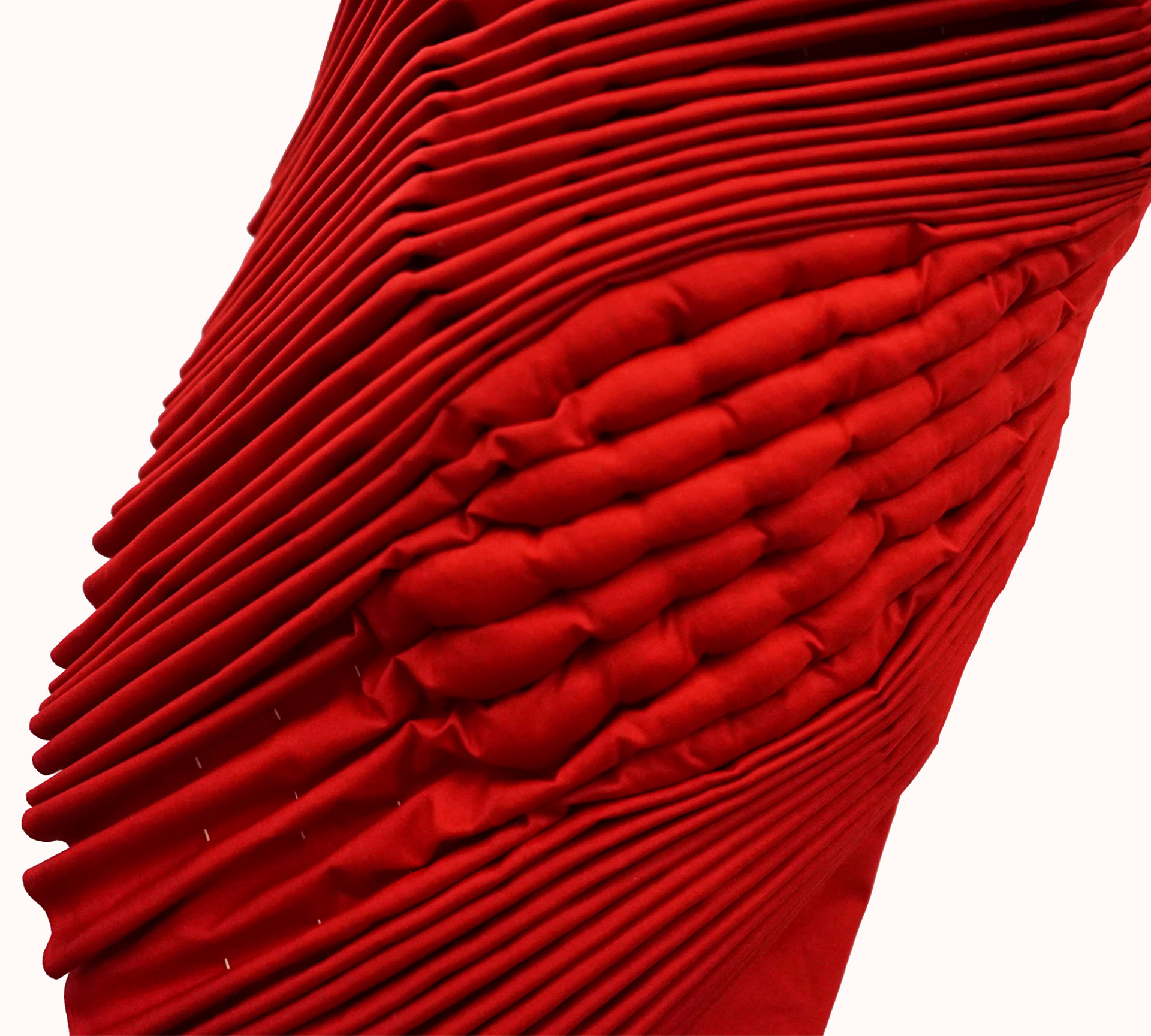 Rust red cotton, waxed thread, organic wool,